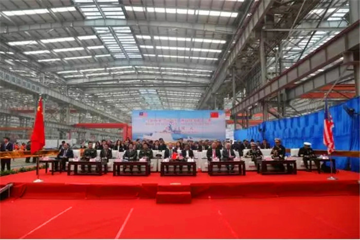 10月23日,馬來西亞瀕海任務(wù)艦項目2號艦開工及1號艦上船臺活動在武船雙柳基地成功舉行。中船重工總經(jīng)理吳永杰、馬來西亞國防部部長沙布先生出席活動并致辭。中船重工副總經(jīng)理吳曉光,馬來西亞國防軍總司令祖克弗里上將,武船董事長楊志鋼、副總經(jīng)理姚勝華及馬來西亞海軍、馬來西亞莫實德船廠、中國政府及軍隊相關(guān)部門、中國船級社、中船重工等單位相關(guān)領(lǐng)導(dǎo)及代表蒞臨活動現(xiàn)場。