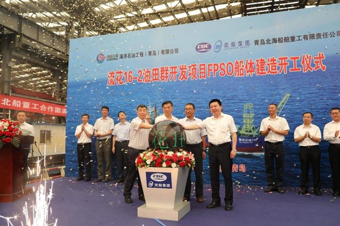 6月27日,武船集團北船重工新承接的 “流花16-2油田群開發(fā)項目FPSO船體建造”工程在北船重工船體制作部聯(lián)合廠房正式開建。武船集團北船重工總經(jīng)理韓兵主持開工儀式,青島西海岸新區(qū)副區(qū)長隋斌,中海石油(中國)有限公司深圳分公司副總經(jīng)理樂鉆,海洋石油工程股份有限公司董事長金曉劍,武船集團總經(jīng)理、北船重工董事長陳?劍?共同啟動開工按鈕。
